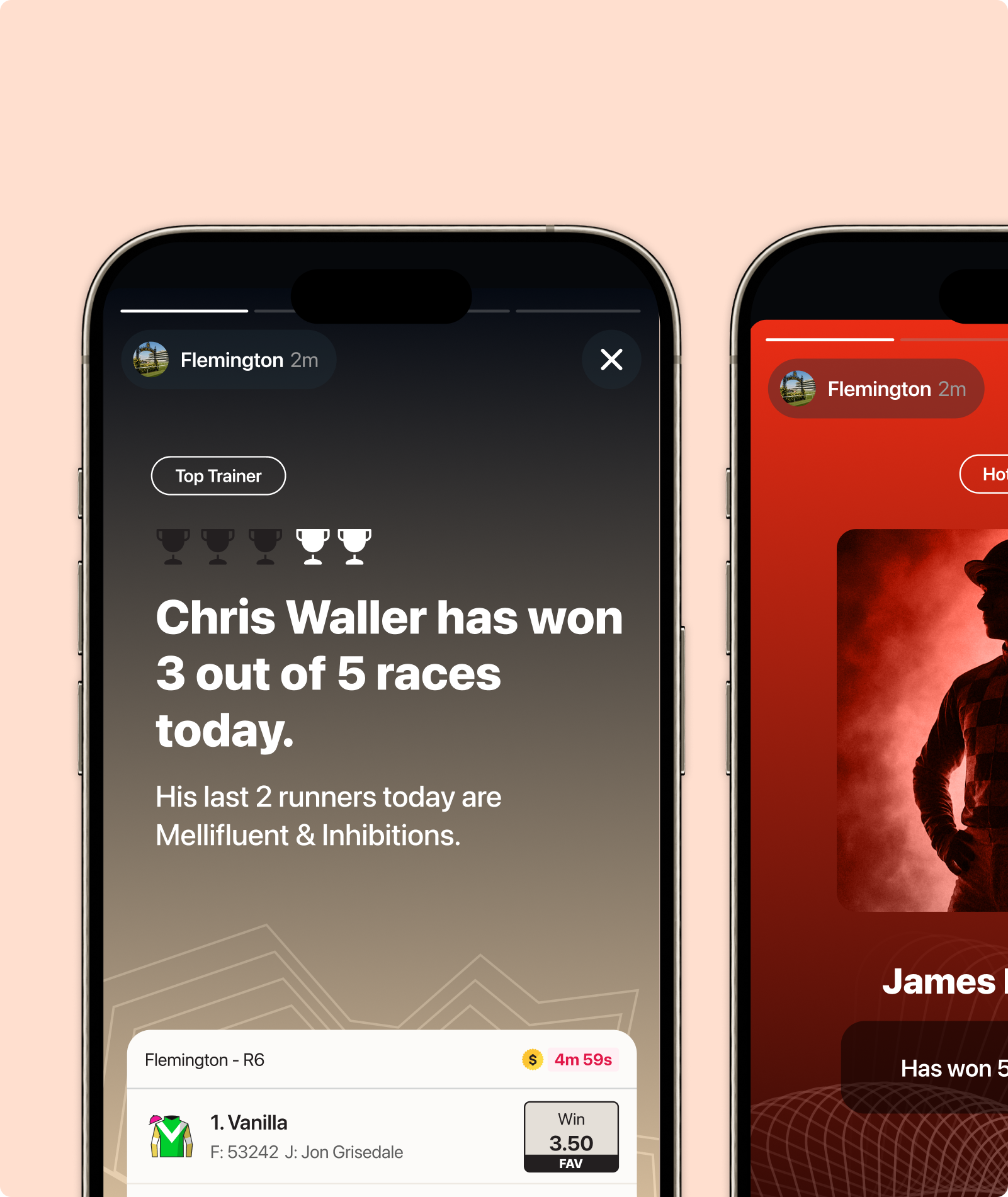 Delivers real time bite sized insights on hot runners, jockeys and trainers in a simple, social media style feed.